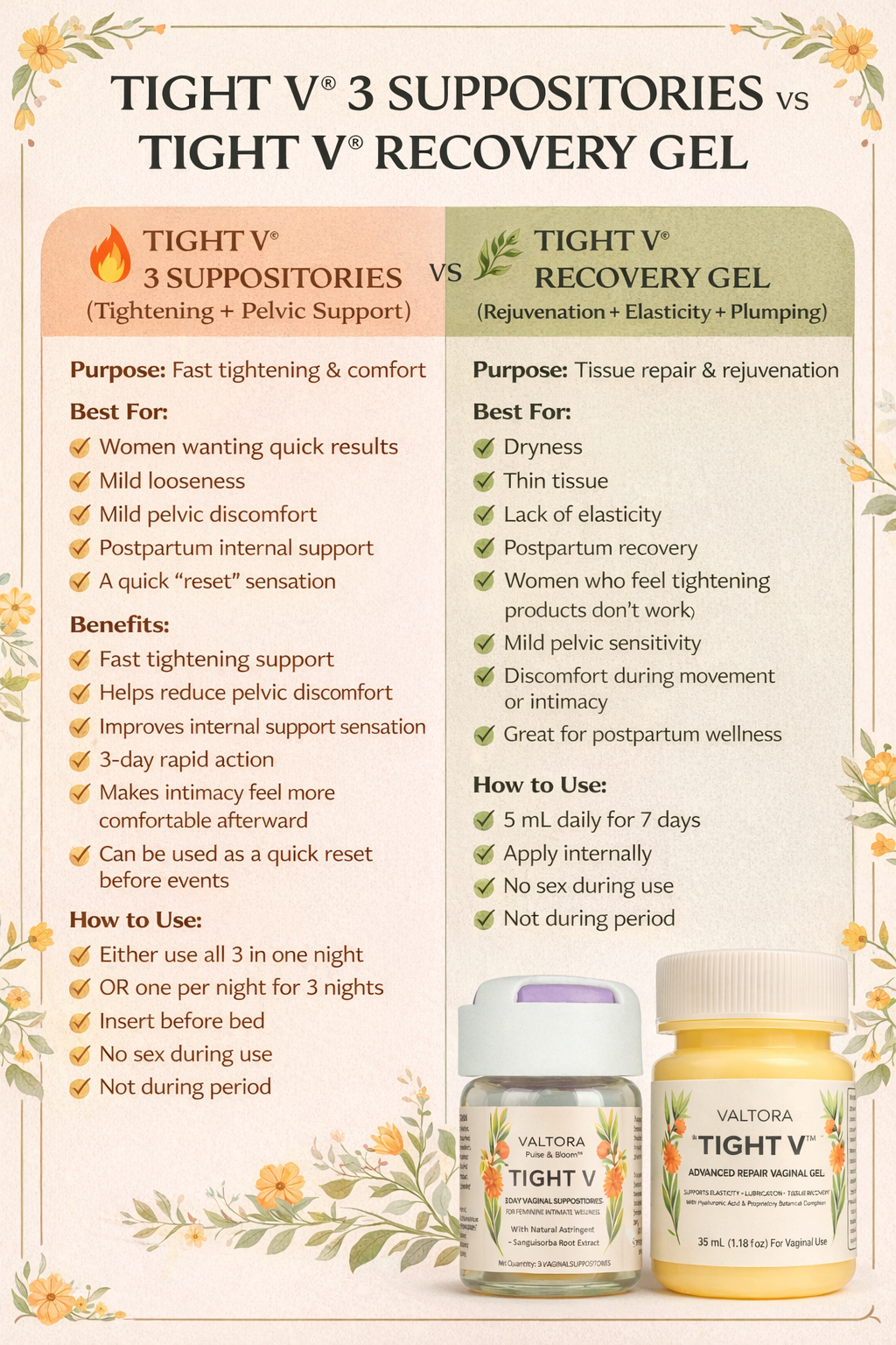 Tight V™ Advanced Repair is a 7-day intimate gel program designed to help replump, refresh, and support vaginal tissue comfort after childbirth or changes over time.